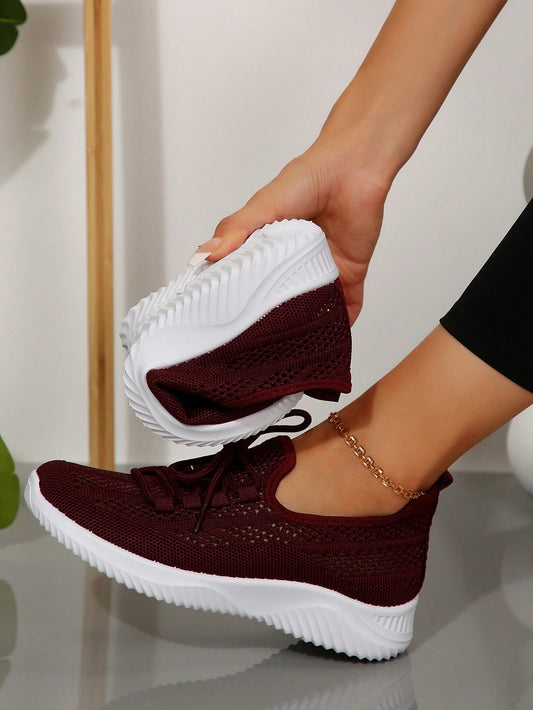 1 Pair Solid Color Sports Mesh Breathable Comfortable Flat Knit Casual Sneakers For Women, Suitable For School, Work, Running, Lightweight, Fitness, Hiking, Parties, Dining, Shopping, Dating, All-Day Wear