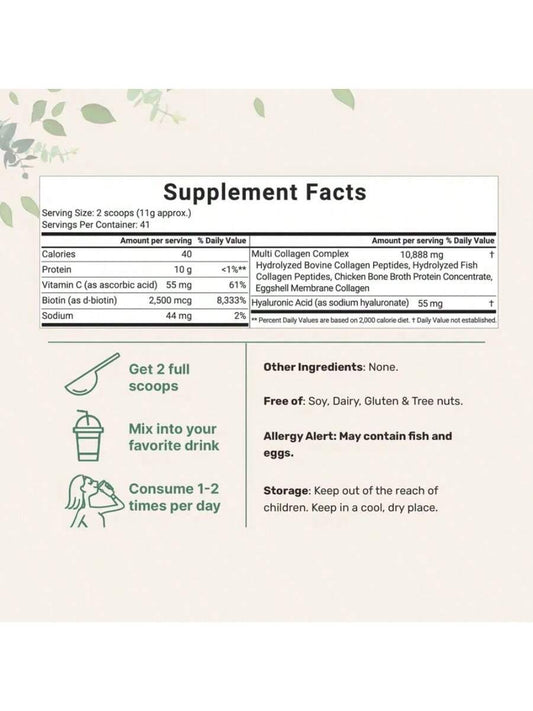 (1Pc) Multi Collagen Peptides Powder - Hydrolyzed Protein Peptides With Hyaluronic Acid, Biotin