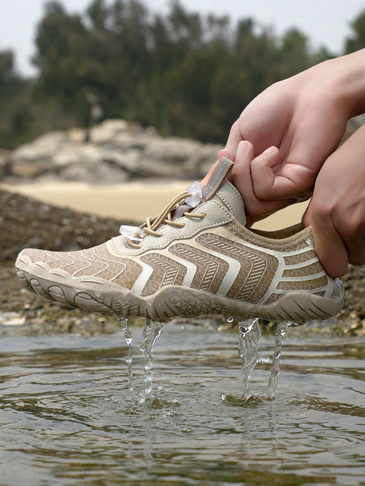 1 Pair Men's Outdoor Streambed Water Shoes, Beach Water Shoes With Breathable Mesh Upper, Quick Drying For Swimming, Snorkeling, Beach, Water Sports, Rubber Non-Slip Sole, Suitable For Beach Party