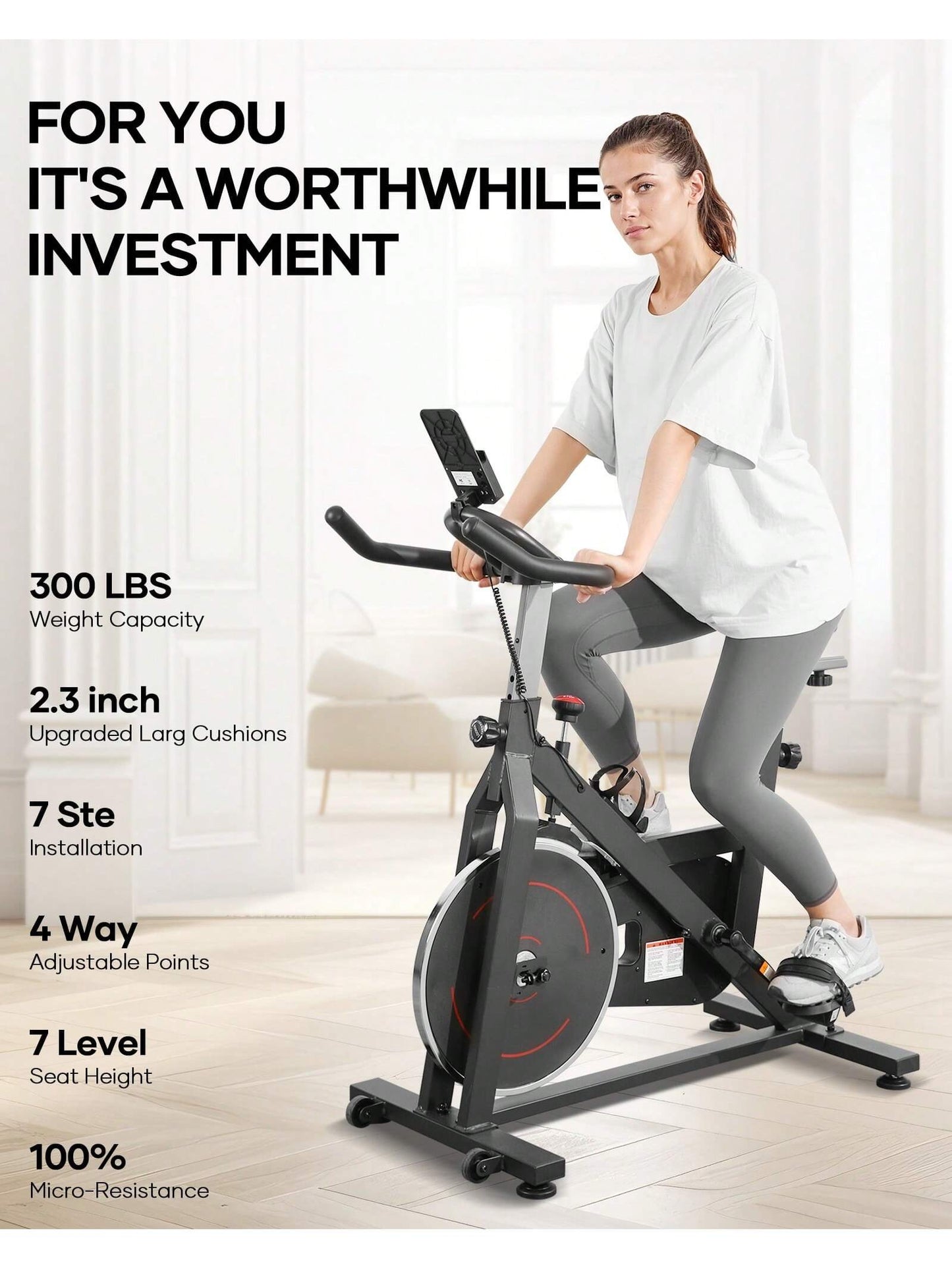 Exercise Bike Indoor Cycling Bike With 300lbs.Big Seat Cushion For Home Cardio Leg Workout